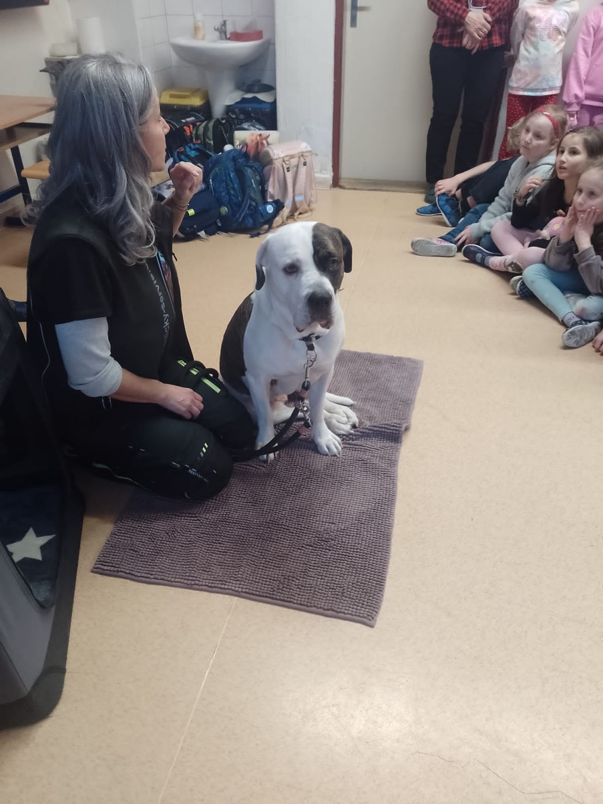 Paní lektorka přišla se svým psem a dětem poutavou formou vysvětlila, jak se ke psům správně chovat a čemu by se měly vyhnout.